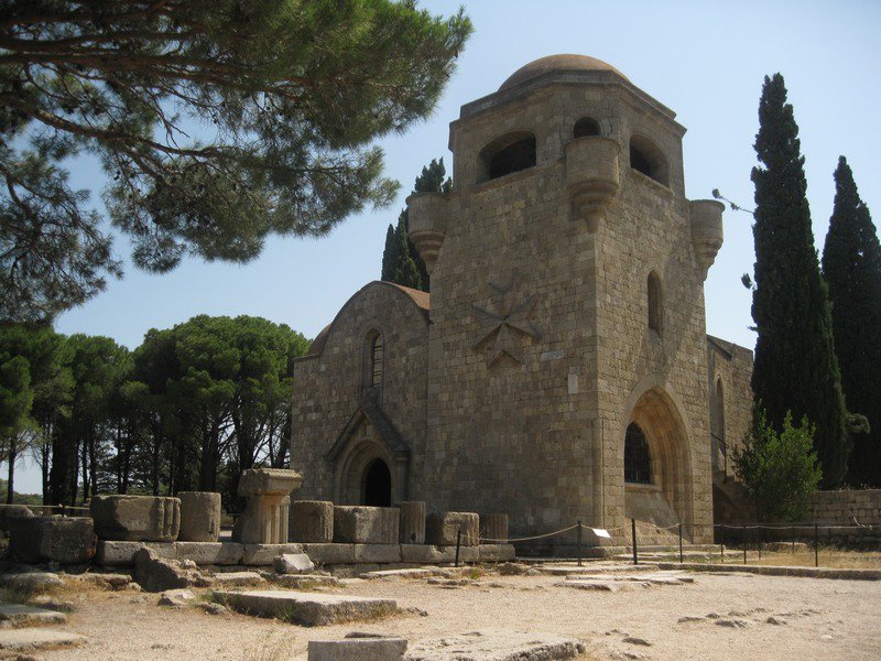 The Filerimos hill overlooks the entire panorama of the north of the island of Rhodes and is located about 15 kilometers from the capital city, near the village of Trianta. On the eastern side of the hill lie the foundations of the temple of Athena Polias, an early Christian basilica, and a small underground Byzantine church frescoed in 1300 and damaged under Turkish rule when the faces of human figures were erased for religious reasons. Here is a monastery erected by the knights of San Giovanni in honor of the Virgin. Inside there is a wonderful medieval cloister. At the top of the Filerimos hill, at 267 meters above sea level, there is a via crucis that ends at an enormous cross, it is 18 meters high, inside which there is a stairway where it is possible to climb to admire the fantastic landscape.